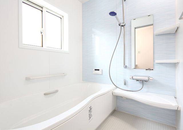 - 浴槽・鏡・壁床天井面・トレー各所・排水溝・ドア両面・窓ガラス(内側のみ)・乾燥機能付き換気扇は表面とフィルターまで